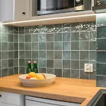 A mini-kitchen with a microwave oven, a refrigerator, and a stovetop is provided in the apartment, along with coffee and tea making facilities. This apartment is within walking distance of Peron VI cable car station.